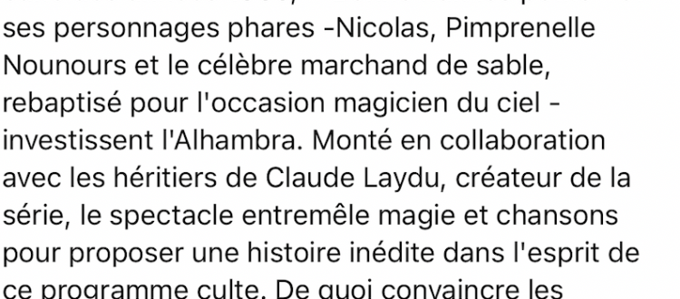 Le Figaro annonce Le Figaro annonce la comédie musicale « Tous avec Magic Nounours ! » au théâtre de l’Alhambra jusqu’au 23 janvier...
